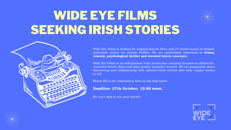 Wide Eye Films is looking for original feature films and TV Series based in Ireland, preferably stories set outside Dublin. They are particularly interested in drama, comedy, psychological thriller and elevated horror concepts.